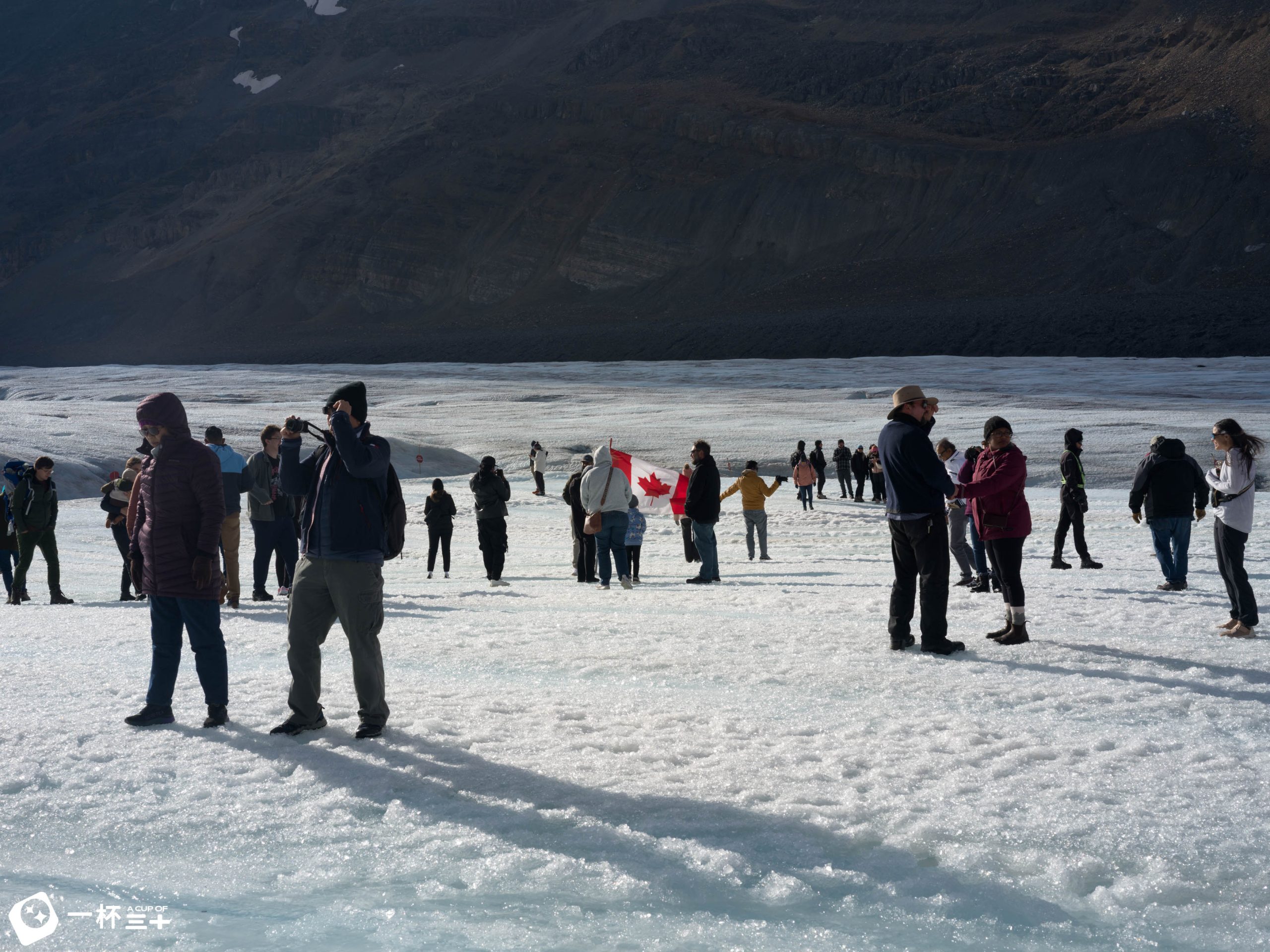 這屬於「一生一次」的體驗。能搭乘特製的大輪雪車開在厚厚的冰河上,還可以下車直接踩在萬年冰原上喝一口冰河水(真的很冰!)。